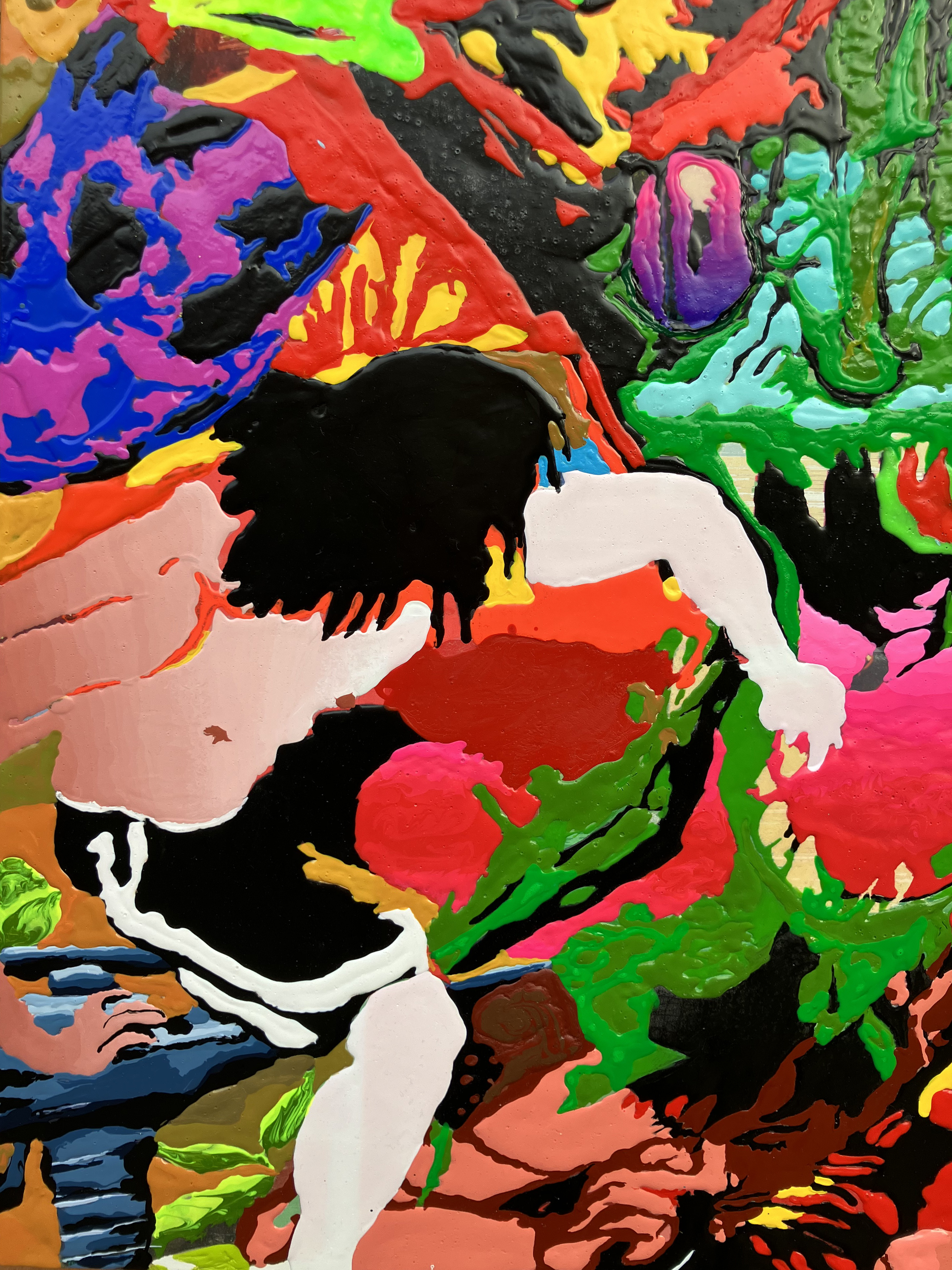 The paintings persist in acts of watching—watching horror, watching violation—and through this persistence they implicate. To keep looking is to become, gradually and without drama, a passive accomplice: not to an acrylic painting, but to a crime.